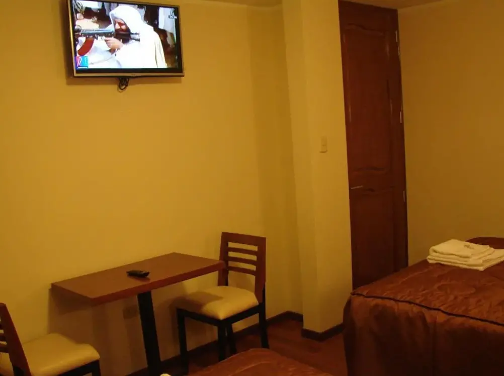 El Hostal Qoyllurwasi se encuentra situado en Calle Bolivar N° 102, Arequipa, Perú. Ofrece una variedad de servicios incluyendo WiFi gratis, escritorio, almacenamiento de equipaje, minibar, baño privado, ducha, habitaciones familiares, TV de pantalla plana, lavadero y transporte de aeropuerto. Los huéspedes destacan especialmente su ubicación céntrica y la cercanía a lugares emblemáticos como Plaza de Armas a 150 metros, Museo Histórico de Arequipa a 350 metros y Swing Rock Cafe a 150 metros. Además, cuenta con comodidades tales como lavadero y almacén para equipajes, facilitando así una estancia cómoda y eficiente.